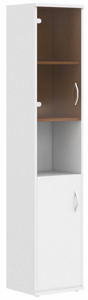 • Шкаф колонка с малой глухой и стеклянной дверьми СУ-1.4(R) Белый 406*365*1975